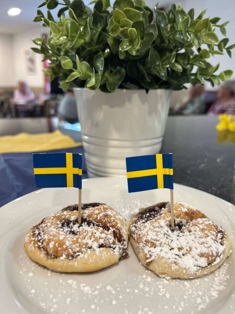 Unsere Bewohner*innen durften ein zauberhaftes schwedisches 3-Gänge-Menü genießen. Begleitet von passender Musik und einem liebevoll gestalteten Rahmenprogramm wurden alle auf eine kleine Urlaubsreise entführt.